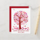 Un joli arbre aux feuilles, coeurs et fleurs. Les couleurs sont le rouge, le violet et le rose. Personnalisez ces cartes avec le nom de votre enfant. Ils peuvent être distribués tels quels ou placés dans une enveloppe de taille A2 (achetés séparément).