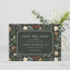 Préparez-vous à réserver la date pour une fête de Noël inoubliable avec notre magnifique carte de sauvegarde de fêtes. Ce design festif est orné de botaniques hivernales, de rubans et de boules, le tout posé sur une riche toile de fond vert foncé. Le cadre de coin de billet central vous permet de personnaliser les détails de votre événement, ce qui donne des cartes de sauvegarde élégantes qui reflètent parfaitement votre style unique. Ne manquez pas cette occasion de répandre la joie des fêtes de manière vraiment enchantante.