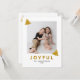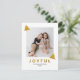 Parties scintillant Joyful Photo Christmas Holiday Card avec des arbres de parties scintillant et des photos à l'avant et à l'arrière. Remplacez par vos photos en cliquant sur le bouton "Personnaliser" et ajoutez votre message personnalisé et votre nom à l'envers