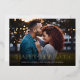 Cette belle carte de vœux de vacances présente une typographie élégante et moderne en bas, avec l'inscription "Joyeuses Fêtes" en véritable feuille d'or. Un dégradé sombre permet au texte de se détacher sur n'importe quelle photo. Le verso de la carte comporte un motif floral et de verdure dessiné à la main dans des couleurs traditionnelles de vert foncé, rouge bordeaux et ivoire sur un fond beige sable (la couleur de fond peut être personnalisée, si désiré).