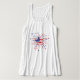 Le mignon débardeur de racerback fleuri féminin est montré en blanc avec un tirage patriotique d'étoiles, parfait pour les célébrations du 4 juillet. Customisez cet objet ou achetez tel quel.
