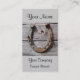 Une carte pour les industries artisanales rurales rustiques, représentant un vieux fer à cheval avec rouille rouge à la surface. Le fer à cheval est accroché à un vieux mur de planches de bois argentées vieilles.