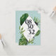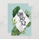 Mariage moderne et informel Save The Date carte représentant une belle illustration de feuilles de jungle tropicale verte. Ajoutez facilement la date de votre cérémonie et les noms de la mariée et du marié en polices gris foncé sur un arrière - plan géométrique en forme blanche. Cette carte Save the Date fait partie de la collection "Tropical Jungle Mariage" avec de nombreux éléments de coordination pour créer une suite mariage unique.