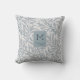 Élégance vintage douce projeter oreiller avec des branches saule sans couture motif dans une belle couleur turquoise et un monogramme personnalisé dans la police sans serif avec une branche sous