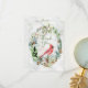 Cette conception présente des feuilles verdoyantes (aiguilles de mistletoe et de sapin) couronnes et des oiseaux cardinaux colorés.