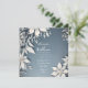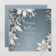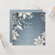 faire-part de mariage magique d'hiver carré avec des fleurs d'hiver blanches et vertes sur fond bleu glacé dégradé.