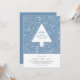 Célébrez la saison avec cette invitation de fête de vacances moderne et mignonne. Ce design présente un motif de feuillage d'hiver et un cadre d'arbre sur un fond bleu. Vous pouvez personnaliser le texte pour votre événement hivernal. Plus d'articles assortis et d'autres options de couleur disponibles dans ma boutique BaraBomDesign.