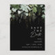 Nous avons conçu cette carte postale d'invitation "save the date" noire avec un feuillage et une écriture à feuilles d'or pour compléter votre mariage bohème simple et élégant. Elle présente des feuilles de eucalyptus vertes et blanches modernes, du feuillage de fougère, une fleur de succulente et des feuilles en feuille d'or minimalistes. Ces éléments donnent une impression de forêt enchantée à l'aquarelle fantaisiste, parfaite pour tout mariage rustique et bohème ! N'hésitez pas à la personnaliser pour qu'elle soit vôtre ; n'hésitez pas non plus à parcourir le reste de la collection pour trouver des produits assortis et coordonnés !