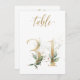 Belle carte de numéro de table avec un motif botanique - une illustration aquarelle de feuilles vertes et dorées. Table 31. Veuillez vérifier tous les numéros disponibles