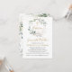 Baptême de bébé / Baptême de baptême carte d'invitation. Cette conception présente une illustration de feuillage vert et doré en aquarelle avec des confettis à effet doré sur le dessus