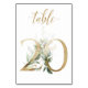 Belle carte de numéro de table avec un motif botanique - une illustration aquarelle de feuilles vertes et dorées. Table 20. Veuillez vérifier tous les numéros disponibles