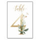 Belle carte de numéro de table avec un motif botanique - une illustration aquarelle de feuilles vertes et dorées. Table 4. Veuillez vérifier tous les numéros disponibles