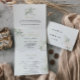 Cette faire-part de mariage triplée vert or est parfaite pour un mariage rustique. Cette conception artistique présente une aquarelle dessinée à la main or et feuillage vert, inspirant la beauté naturelle.