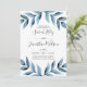 Invitation vos invités à votre mariage avec cette invitation feuille d'aquarelle bleue avec un simple motif géométrique arrière - plan et une typographie moderne lettrée à la main. D'autres arrière - plans sont disponibles. © Mini Moi Prints