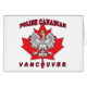 Montrez votre fierté polonaise dans votre ville natale canadienne ou dans votre ville natale d'ancêtres. Ce magnifique dessin présente une feuille d'érable rouge du drapeau du Canada avec une couverture d'aigle blanc polonais et les mots Canadien polonais sur le dessus et Vancouver sur le fond.