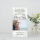 Le mémorial élégant de sympathie d'automne vous remercient des affichages de carte de photo une photo personnelle de votre aimée. L'arrière - plan d'automne est un motif de feuille de chute en doucement vert, bronzage, et taupe. Un message de gratitude et le "Merci" sont au-dessus de la photo. Sentez-vous libre pour changer le sentiment en vos propres mots personnalisés si vous souhaitez. Le fond lit "de la famille de" avec le nom personnalisé en manuscrit élégant. La manière gentille d'exprimer vous remercient aux amis et aimé.