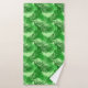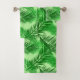 Serviette sertie dans un imprimé de silhouettes en feuilles de palmier, dans les tons vert émeraude profond, vert feuille et vert citron, contre un arrière - plan vert citron pastel