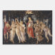 Feuille un : La Naissance de Vénus (vers 1482-1486) de Sandro Botticelli (1444-1510) est une peinture mythologique d'art fin de l'ère de la Renaissance. La déesse Vénus a émergé de la mer en femme adulte et se tient à l'intérieur d'une grande coquille sur le rivage.