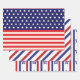 A Red White And Blue Patriotic Wrapping Paper Sheet Set For The 4th Of July Celebration Designed With American Flags, Stripes and Stars