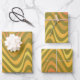 Feuille De Papier Cadeau 60s rétro les années 70 Abstrait Lignes Motif Vert