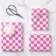 Feuille De Papier Cadeau À damiers blanc rose chaud moderne