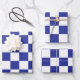 Feuille De Papier Cadeau à damiers bleu et blanc