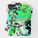 These wrapping paper sheets have an abstract pattern with different colors. One sheet had a white blue green color theme, another has a golden yellow color theme, and the third one has a pink color theme.