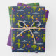 Ajoutez une touche de science-fiction aux cadeaux pour toute occasion avec cet assortiment de papier d'emballage hors du monde. Il comprend une feuille de papier à motifs violets comportant des aliens tenant des ballons, une feuille bleu marine d'aliens avec des soucoupes volantes, des lunes et des planètes, et une feuille verte d'aliens festifs en casquettes du Père Noël.