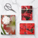 Feuille De Papier Cadeau Amaryllis en Fête Rouge Neige Hiver Floral