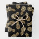 Trois feuilles de papier d'emballage présentent des ananas dorés sur un arrière - plan noir (ou toute couleur que vous choisissez). PLUS de couleurs dans notre magasin.