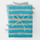 Feuille De Papier Cadeau Aqua Blue Silver Sparkly Confetti Stripes