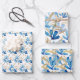 Feuille De Papier Cadeau Aquarelle Bleu Clair Et Or Peinte À La Main