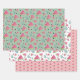 Feuille De Papier Cadeau Aquarelle Motif rose et verte