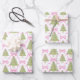 Feuille De Papier Cadeau Arbre de Noël Aquarelle rose