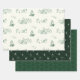 Beau papier d'emballage de Noël vert avec un ensemble de 3 différents modèles de papiers d'emballage avec toile de Jouy illustrations inspirées, dont : 1. Des scènes traditionnelles de vacances avec le Père Noël, un renne, une voiture portant un arbre de Noël et des cadeaux en vert. 2. Arbre de Noël orné d'un style de dessin à trait minimal. 3. Motif de flocons de neige géométriques d'hiver monotone vert. Vous trouverez d'autres créations de Noël et de toile de jouy dans mon magasin.