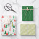Feuille De Papier Cadeau Arbres de Noël du milieu du siècle Vert et Rouge