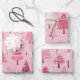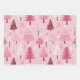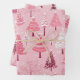 Feuille De Papier Cadeau Arbres de Noël rétro rose pâle