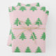 Feuille De Papier Cadeau Arbres de Noël vert lunaire sur rose pâle