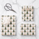 Feuille De Papier Cadeau Arbres de Noël verts sur Plaid à la crème