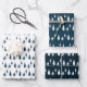 Feuille De Papier Cadeau Arbres d'hiver bleus de la Marine