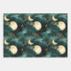 Feuille De Papier Cadeau Arbres verts en or avec oiseaux Noël