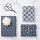 Créez le meilleur cadeau sous l'arbre cette année avec ces feuilles de papier d'emballage en motif de coordination. L'ensemble est décoré d'un drap de bison tonal, d'arbres géométriques modernes et de flocons de neige classiques, tous en ardoise fumée bleu et blanc.