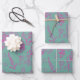 Feuille De Papier Cadeau Art de ligne Fleur sauvage rose et turquoise chaud