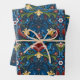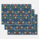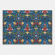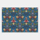 Feuille De Papier Cadeau Art populaire scandinave Bleu Rouge Motif floral