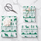 Feuille De Papier Cadeau Balayage nordique Vert Animaux d'hiver Blanc