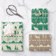 Feuille De Papier Cadeau Balayage nordique Vert Beige Kraft Animaux d'hiver