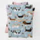 Basset Chatte Chiens Hound avec des manteaux brun, noir, blanc et citron avec des os de chien éparpillés et empreintes de pattes motif chien amusant.