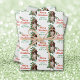 Le motif répété sur ces feuilles de papier d'emballage de Noël est l'image d'un adorable chien de Basset Hound assis au milieu d'un saint vert aux baies rouges. Le texte rouge et vert dit "Joyeux Noël" et "Bonne année". L'arrière - plan sur deux des feuilles de cet ensemble est blanc, tandis que la troisième feuille est argent.