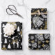 Ce mignon ensemble de feuilles de papier d'emballage comporte des cerfs blancs avec foulard de couleur or et noir, des baubles noirs et blancs avec de l'or et un motif de pulls, chaussettes et casquettes à fleur sur un arrière - plan de noir Envelopper vos cadeaux de vacances dans le style ou l'utilisation dans des produits de fabrication de papier incluant le découpage. De nos coeurs à vos Joyeuses Fêtes !