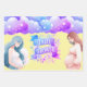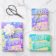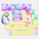Baby shower wrapping paper for twin's girl / boy with bottles, storks, multi-colored clouds with stars